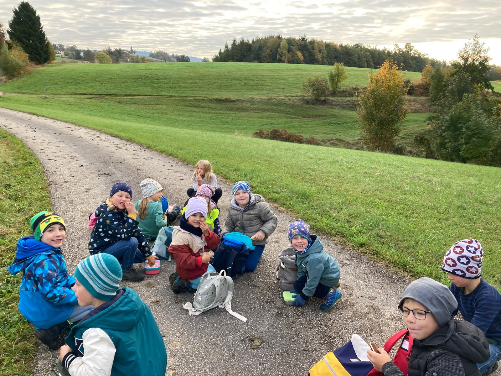 Mit den leuchtenden Westen sind die Kinder im Straßenverkehr besser erkennbar – vor allem in den dunklen Morgenstunden.